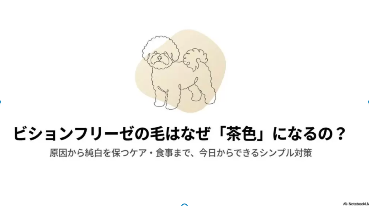 ビションフリーゼの「茶色」という悩みに対しては、まずはそれが子犬期の成長による自然な変化(パピーカラー)なのか、あるいは涙やけや足舐めといったケアが必要なサインなのかを正しく見極めることが重要です。